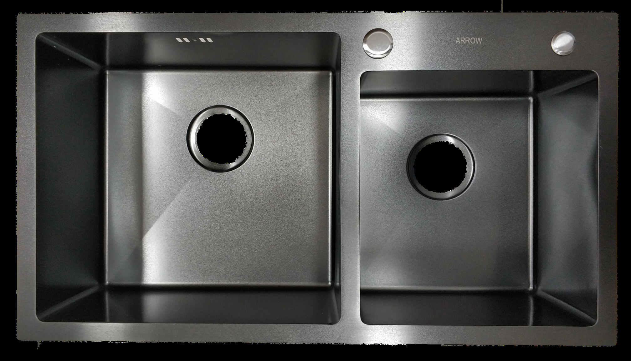 베스트셀러 검은 주방 싱크 고급 스테인레스 강 두배 사발은 아래 손으로 만드는 주방 싱크를 탑재합니다