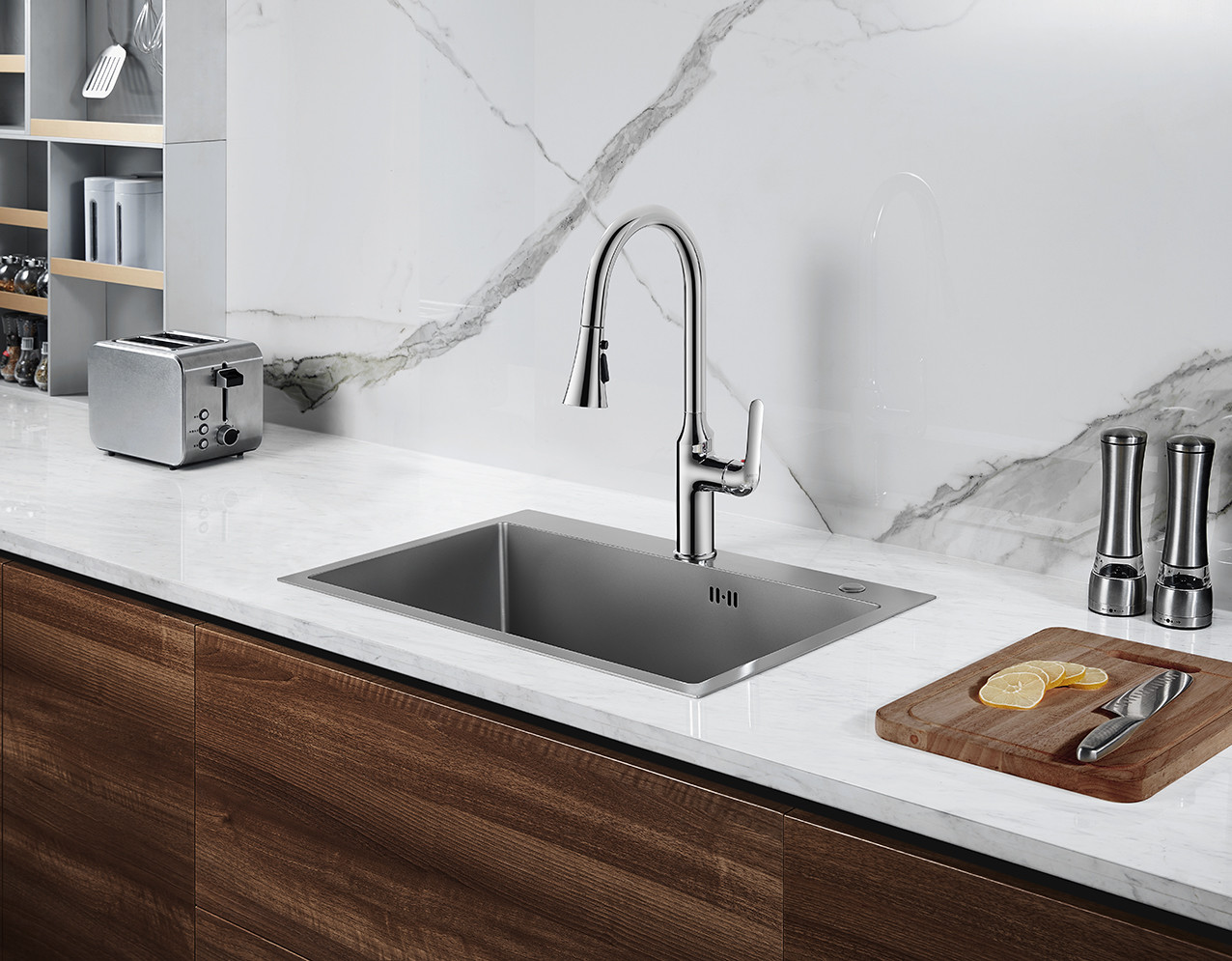 | 상품 이름: | 스테인레스 강 주방 싱크 | 사이즈: | 620x450x220mm |